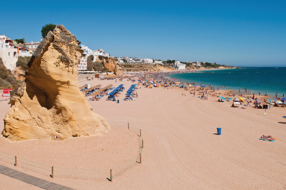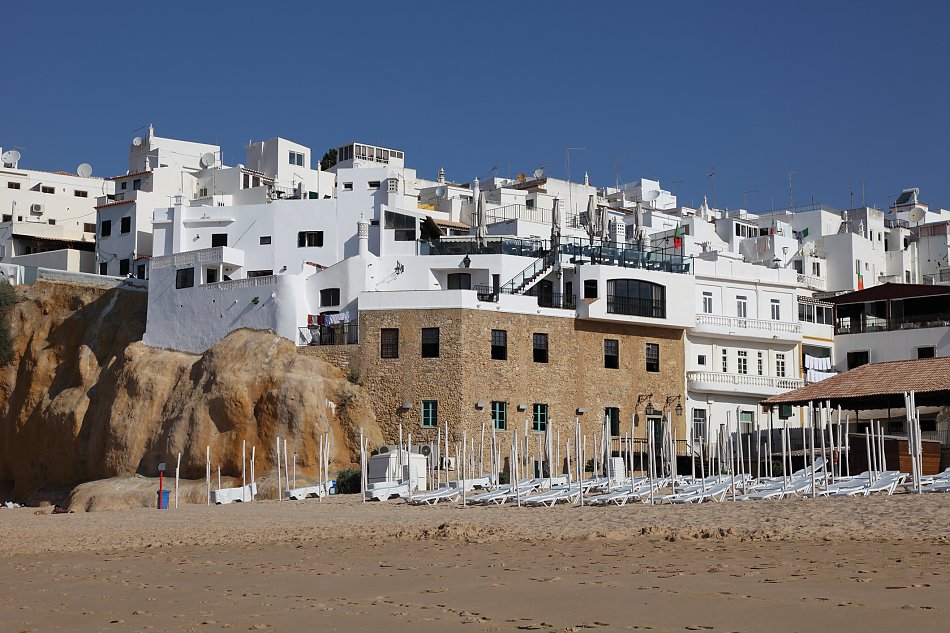 Von Ferragudo auf einem beeindruckenden Klippenweg über steile Felsen, ausgehöhlte Kalksteinformationen und versteckte Sandstrände bis nach Carvoeiro, wo die Einkehr in einer Strandbar lockt. Anschließend setzen Sie Ihren Weg durch die sieben hängenden Täler fort, einem herrlichen Küstenpfad, der durch sieben Einschnitte vorbei an unzähligen Felsgebilden bis zur Praia da Marinha führt. (Gehzeit: ca. 5,5 h)